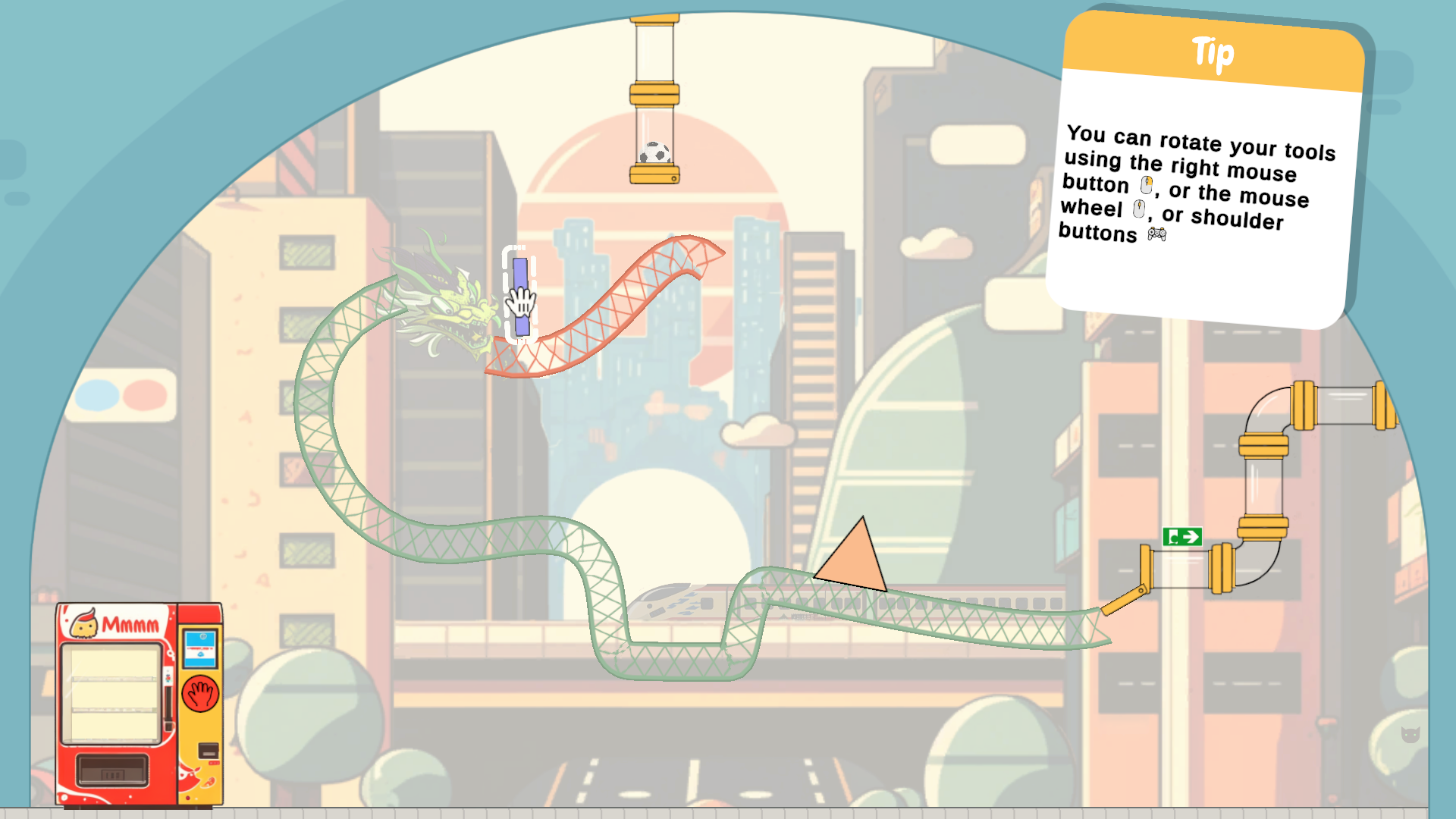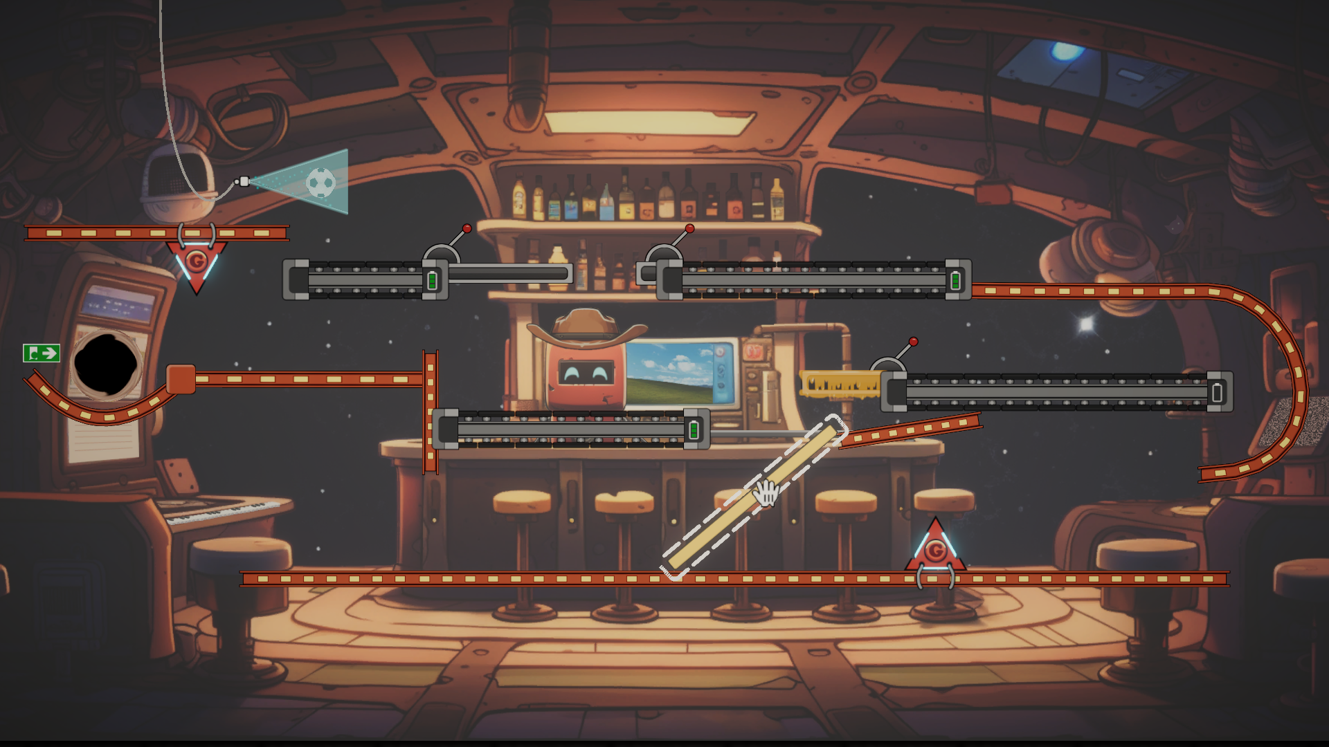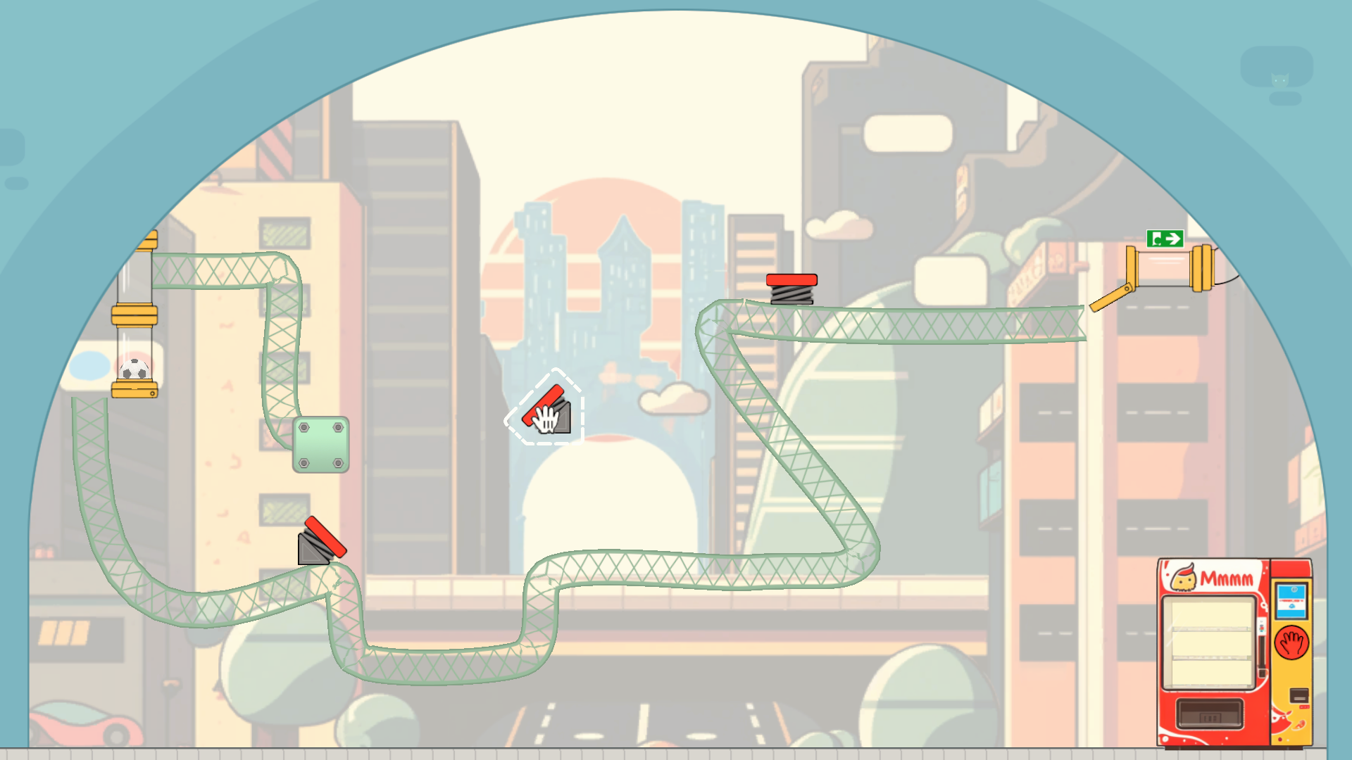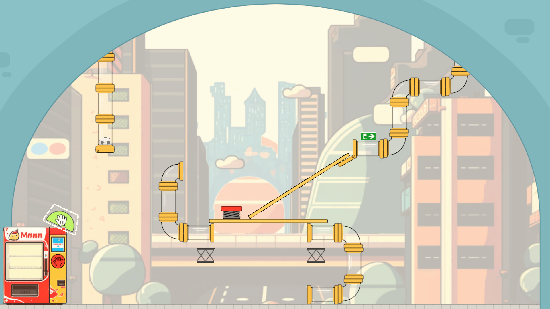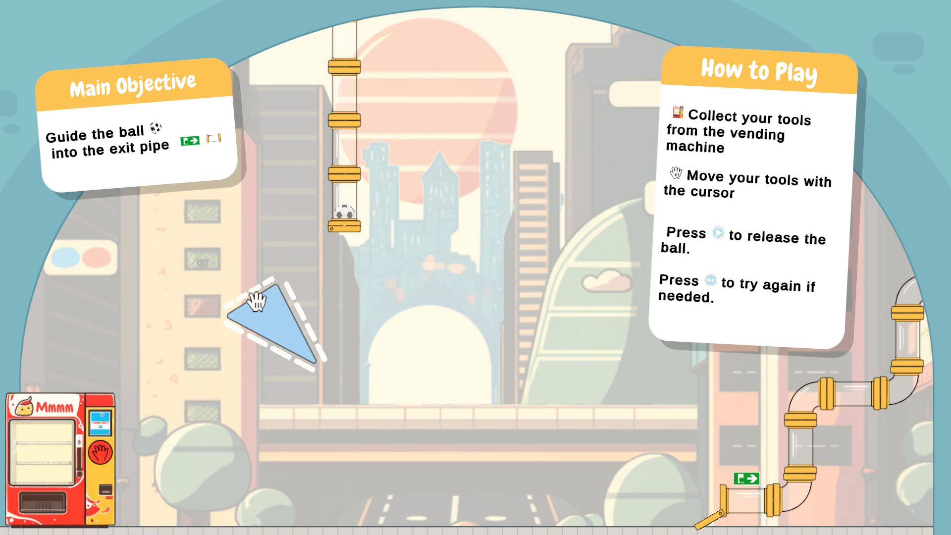 - Use tools and physics to guide the football to the exit.