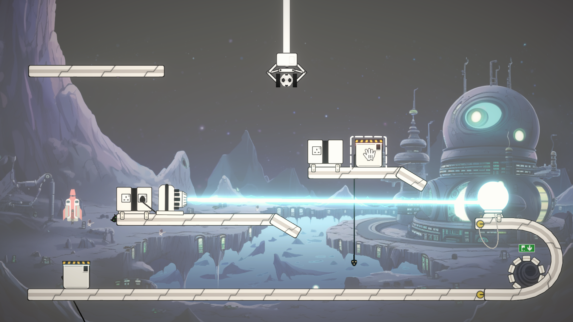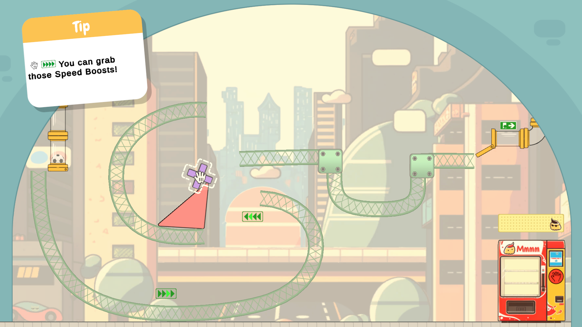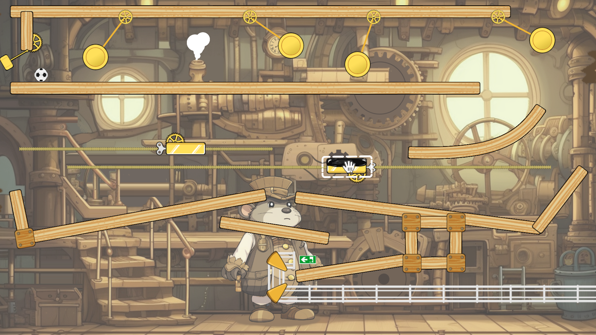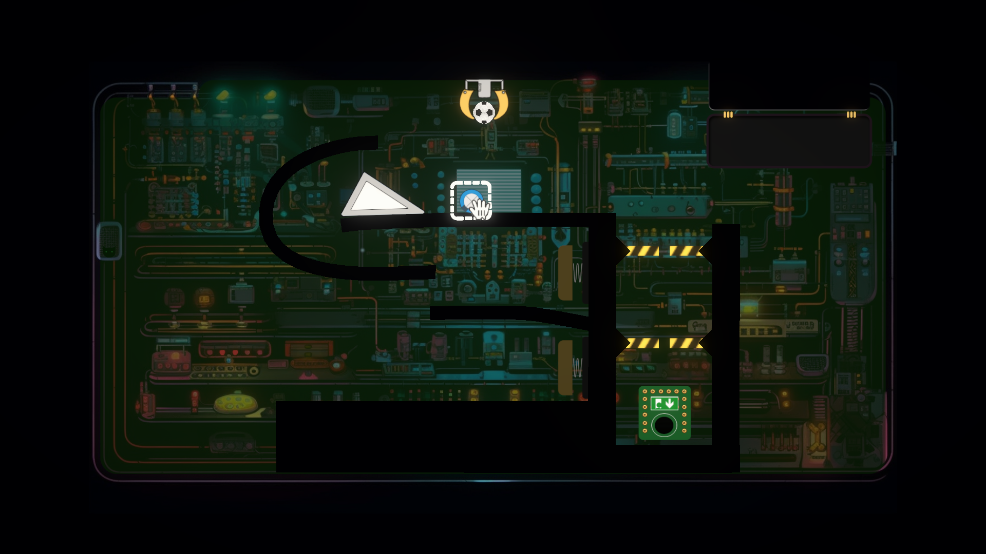 - Use tools and physics to guide the football to the exit.