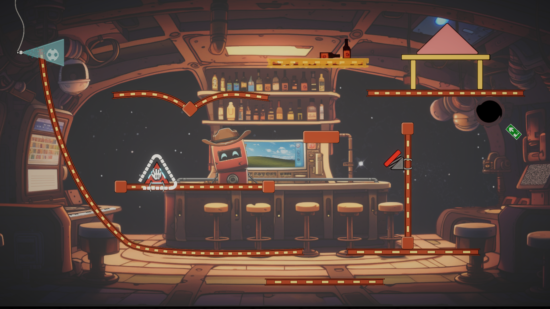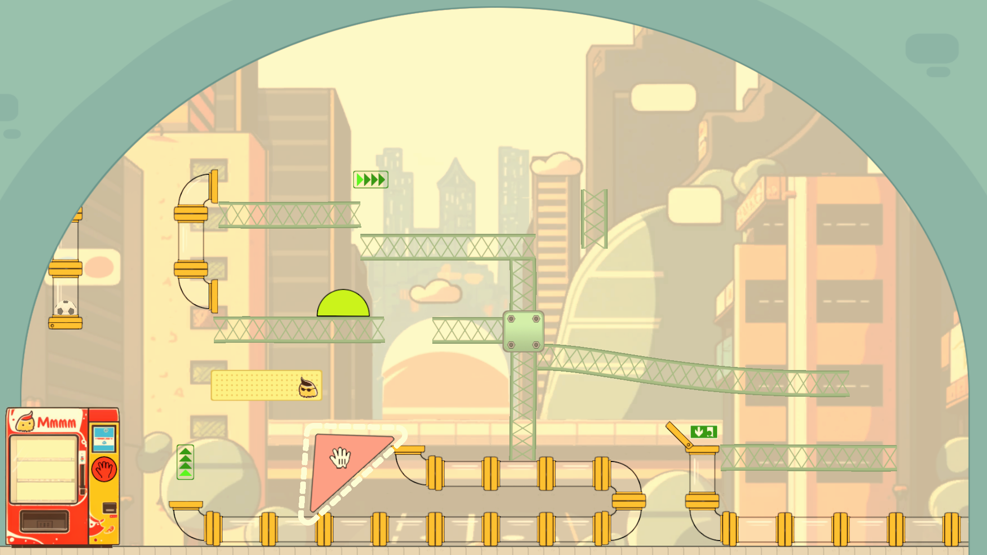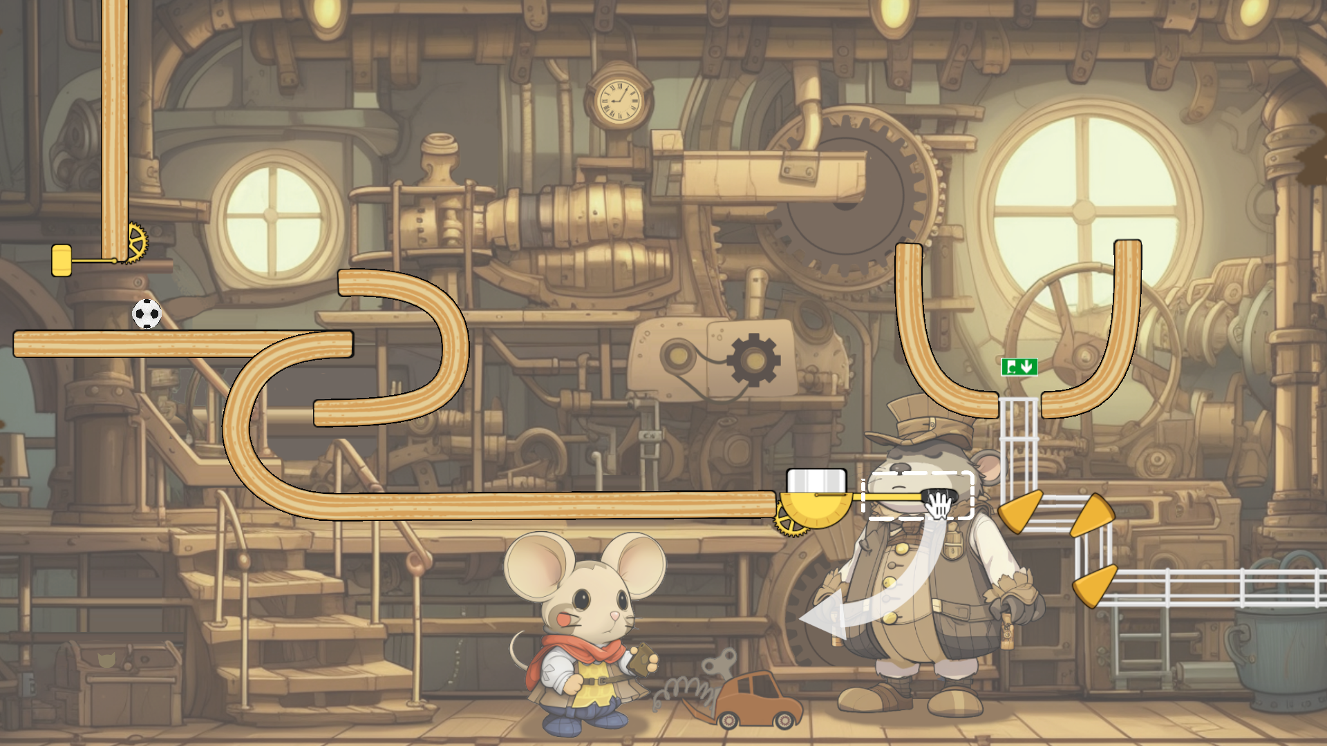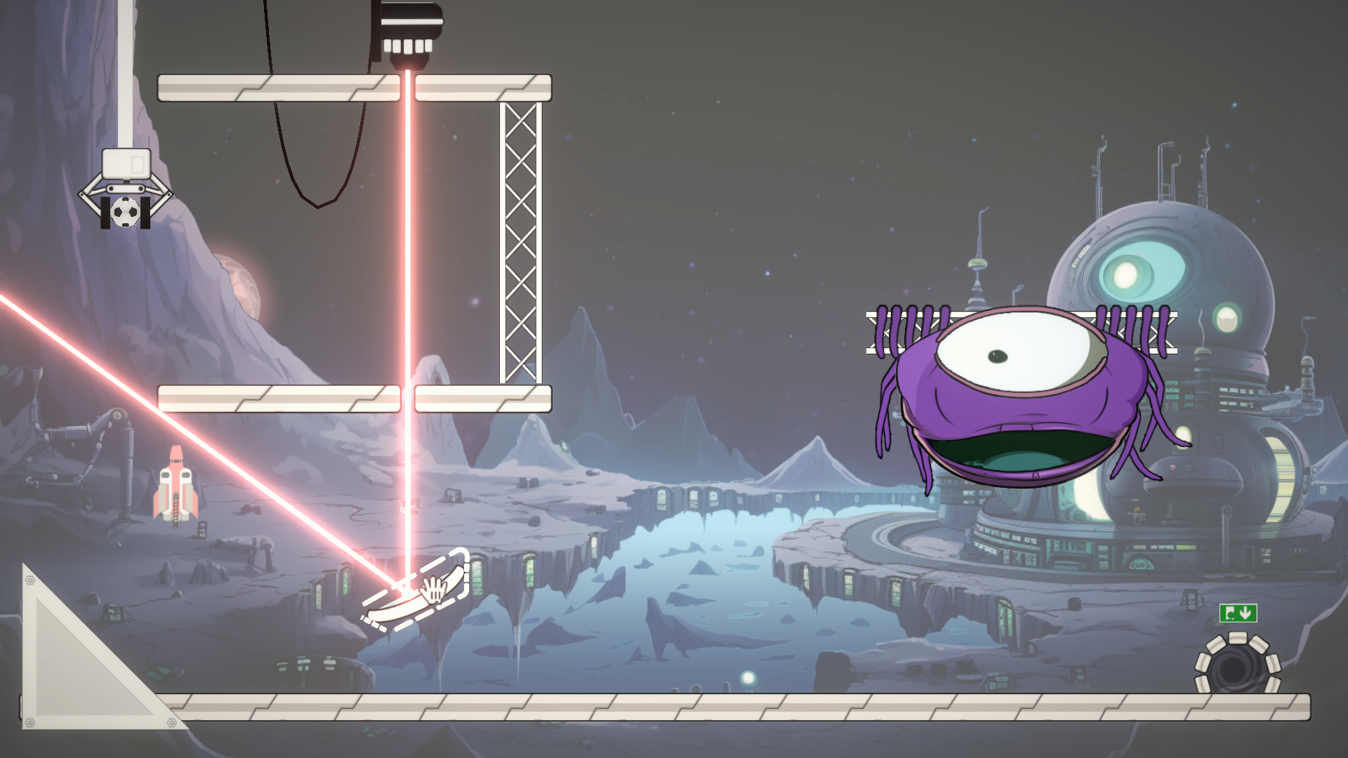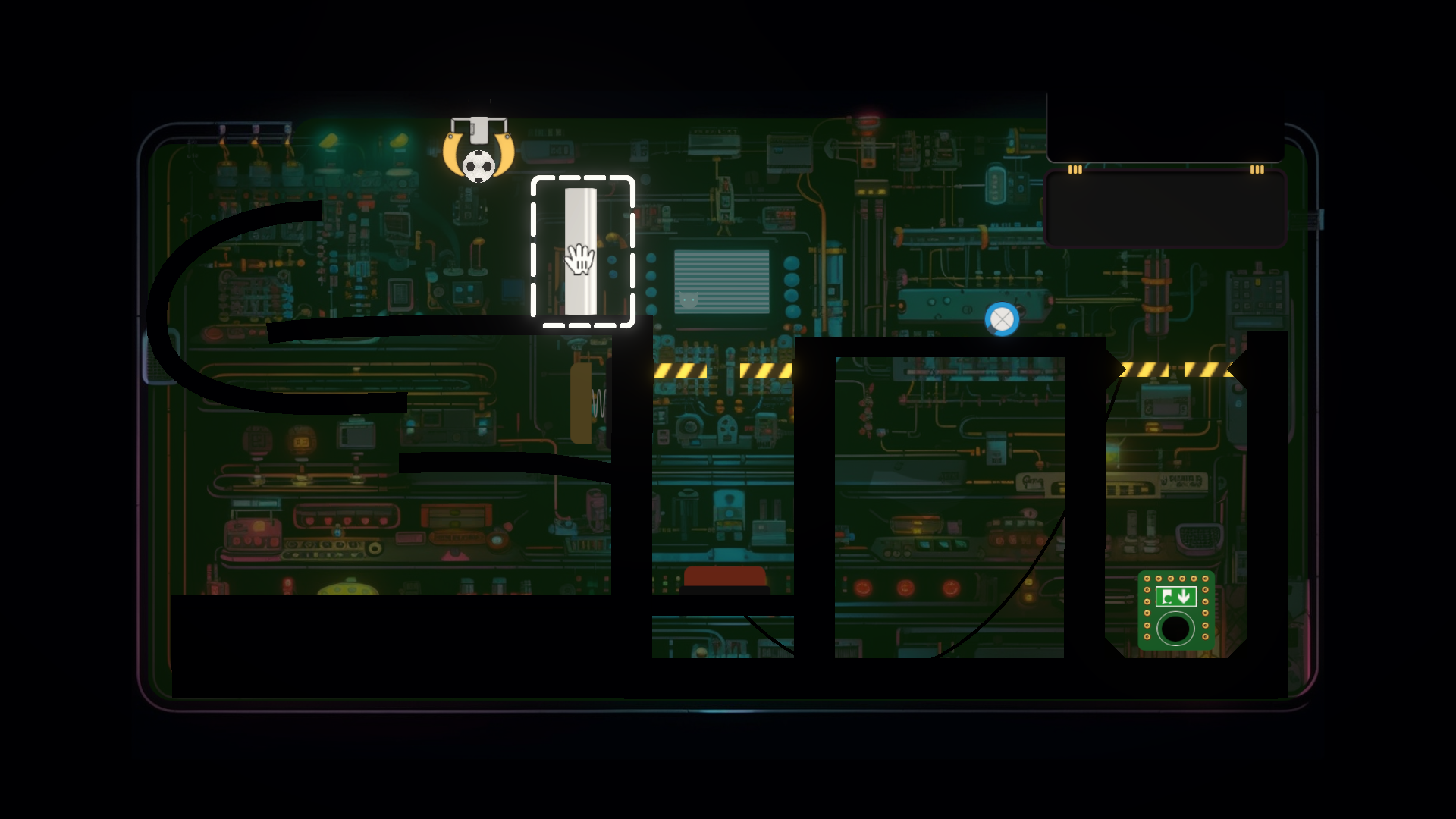 - Use tools and physics to guide the football to the exit.