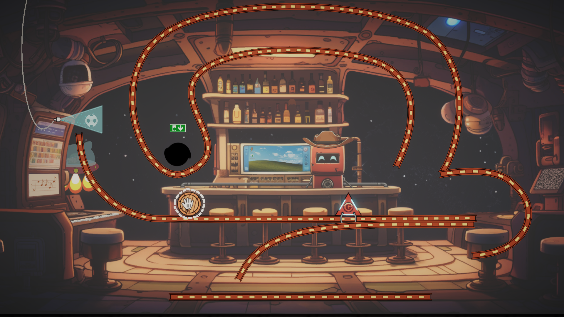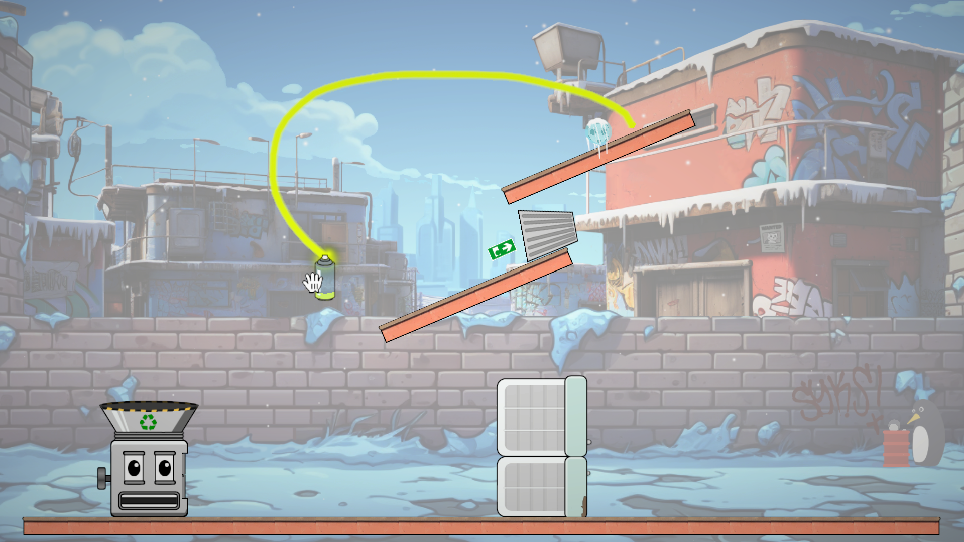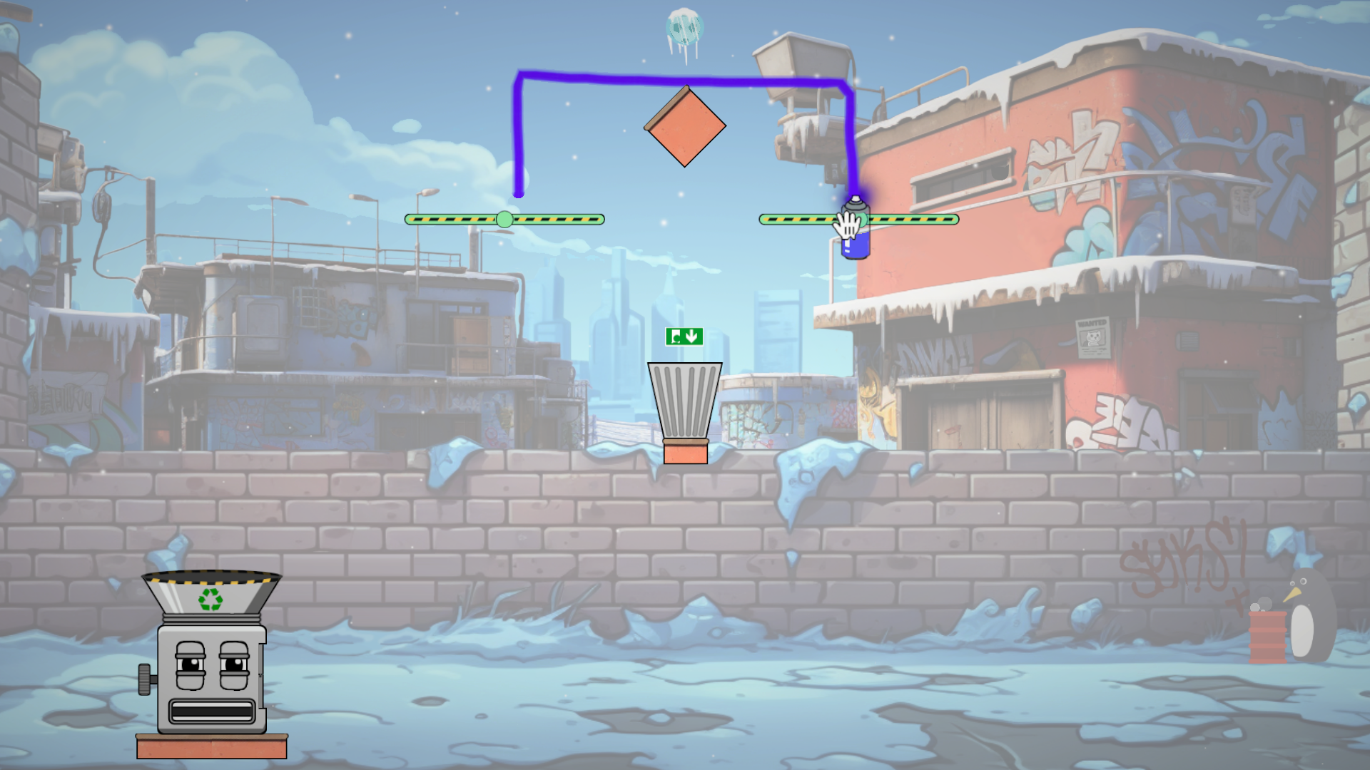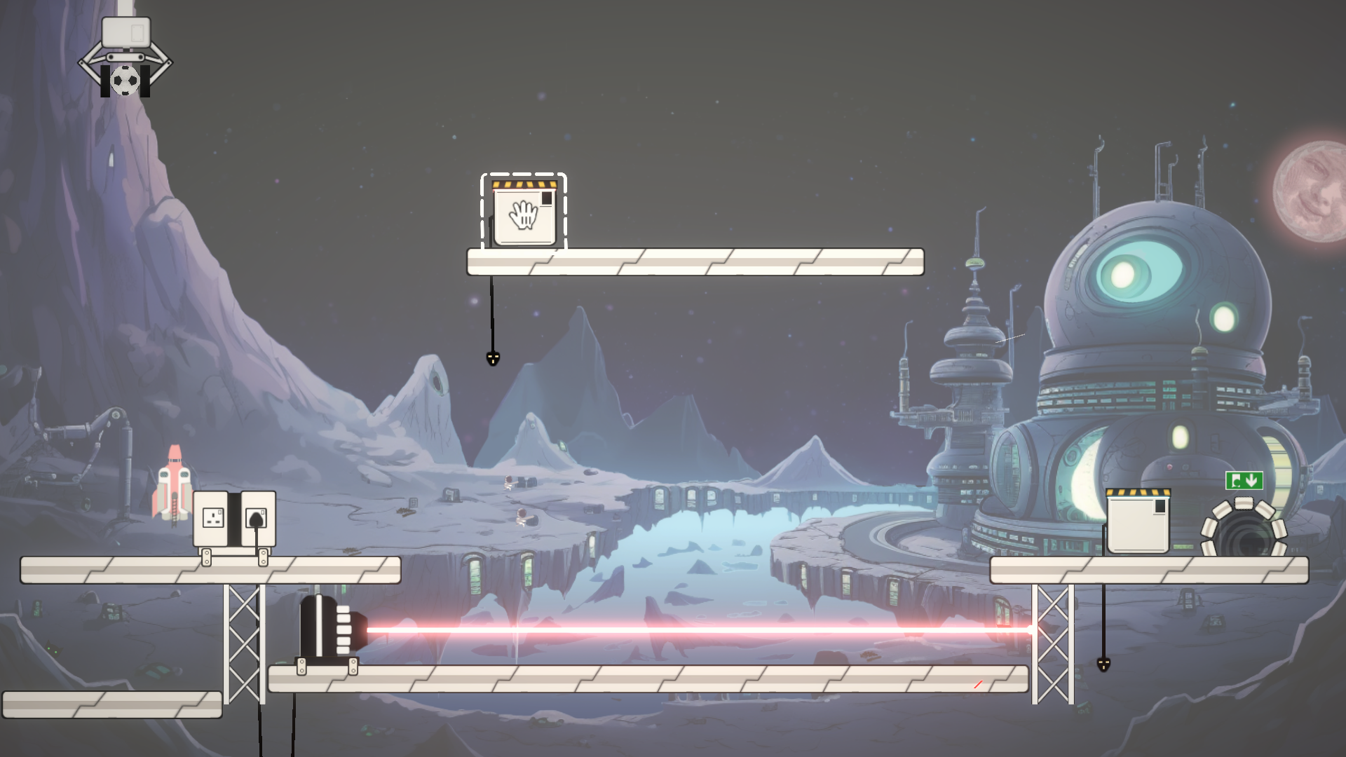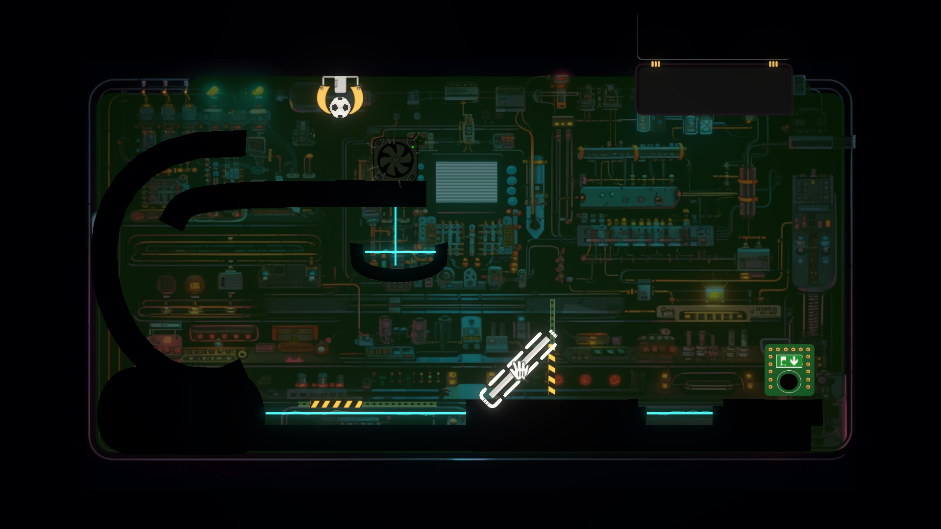 - Use tools and physics to guide the football to the exit.